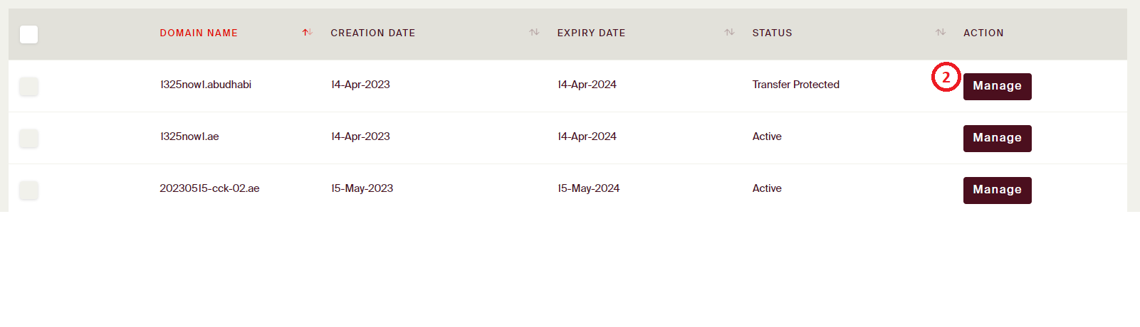 Step 2: Select any domain and click 'MANAGE' button.