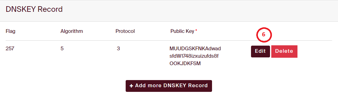 Step 6 : To Edit DNSKEY Record, click on 'EDIT' button