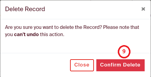 Step 9 : A pop-up will appear for user to delete the data. Click on 'DELETE' button to delete the DS record.