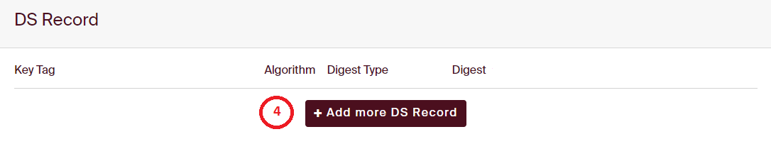 Step 4 : Click '+ ADD MORE DS RECORD' button to add the DS record.