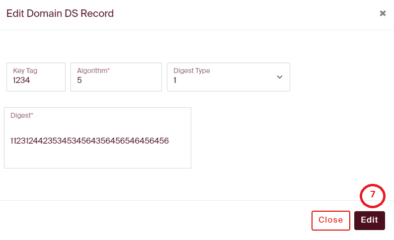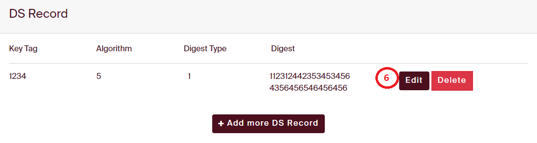 Step 6 : To Edit DS Record, click on 'EDIT' button