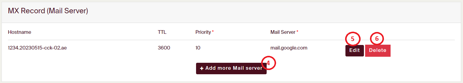 Step 5: Click 'EDIT' button with MX record for update the MX record.