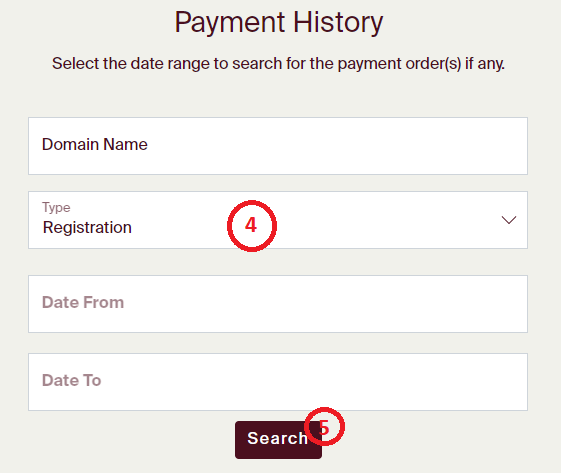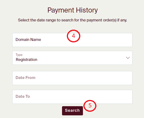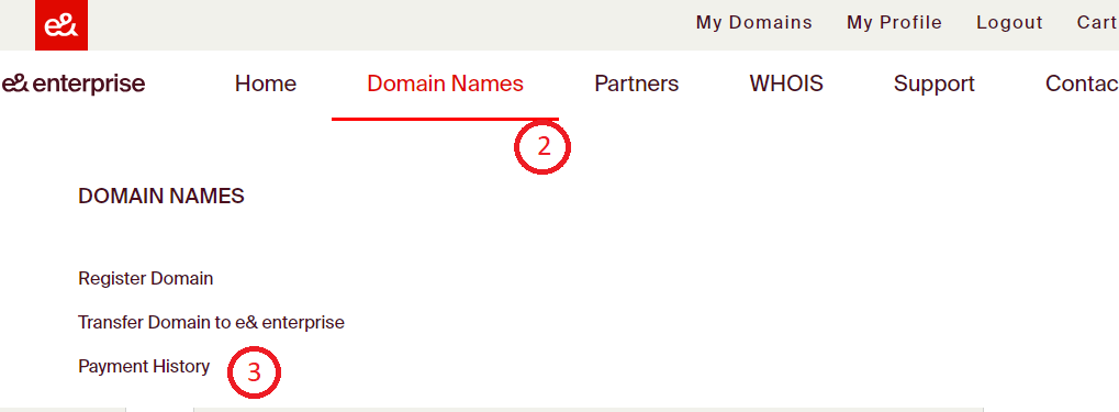 Step 2: To navigate to the Payment History page, click on the 'Domain Names' in the navigation bar above.