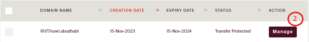 Step 2: Search for the domain you want to view the payment history and click 'MANAGE' button.