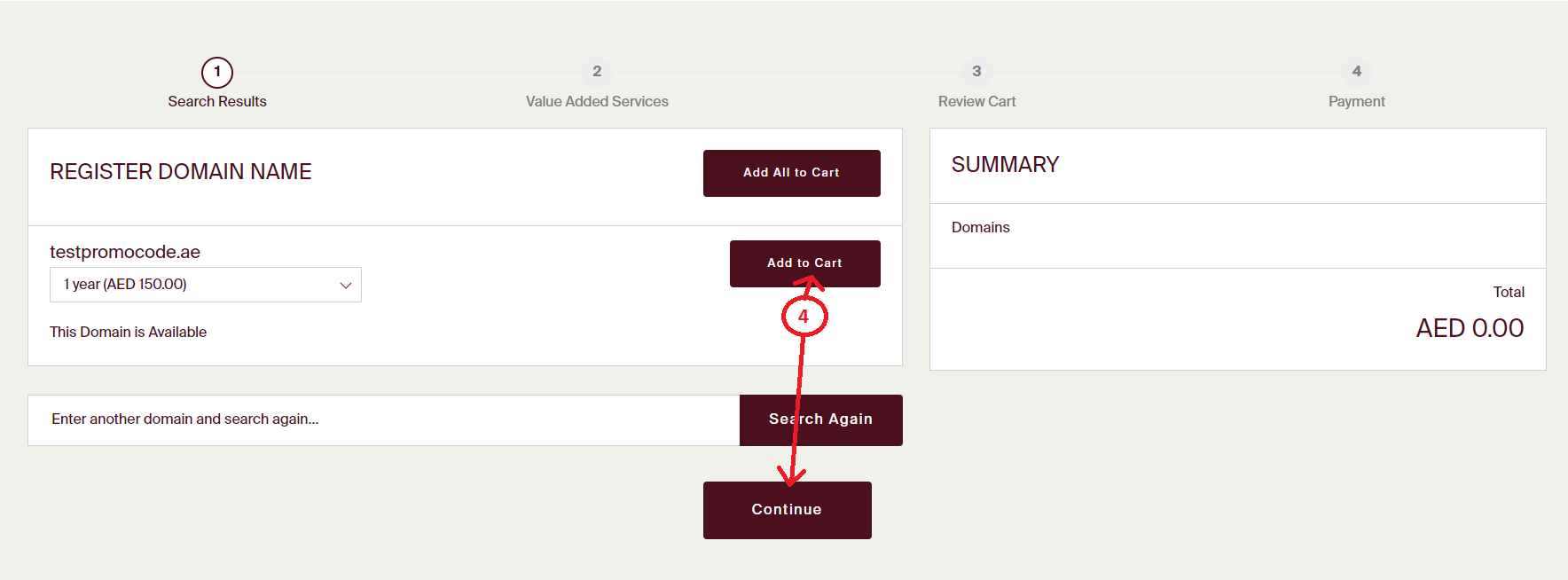 Step 3: Enter the domain name which you want to register into the search box and click search button.